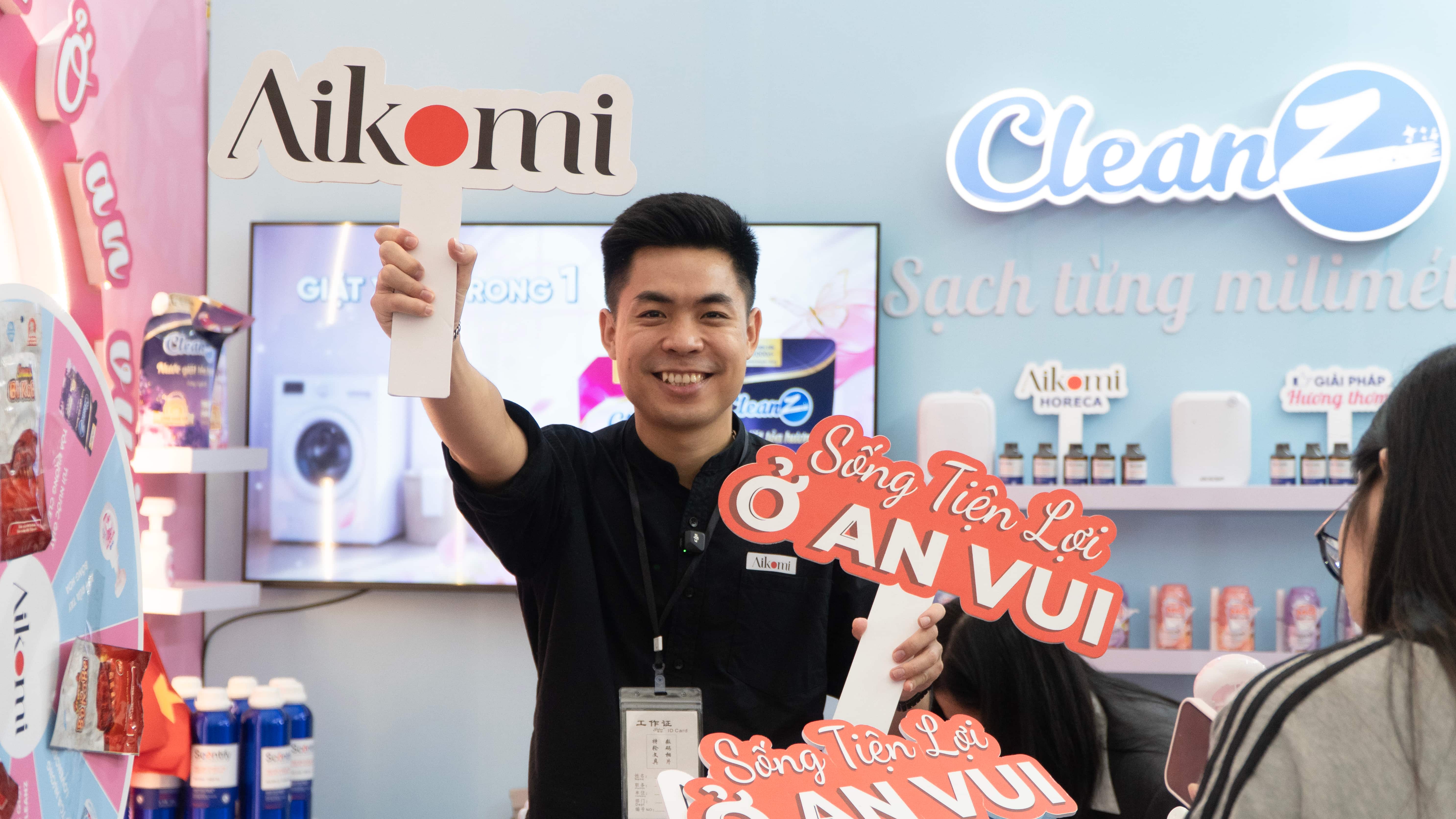 Gian hàng của Aikomi thu hút đông đảo người tiêu dùng nhờ thiết kế hiện đại, thân thiện với thông điệp “Sạch từng milimet”, cùng các sản phẩm được đầu tư bài bản từ chất lượng, mùi hương đến trải nghiệm thực tế.