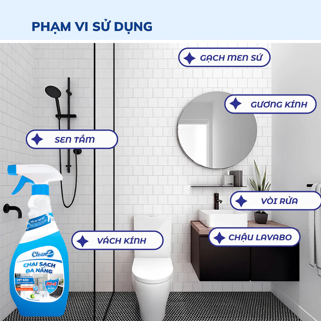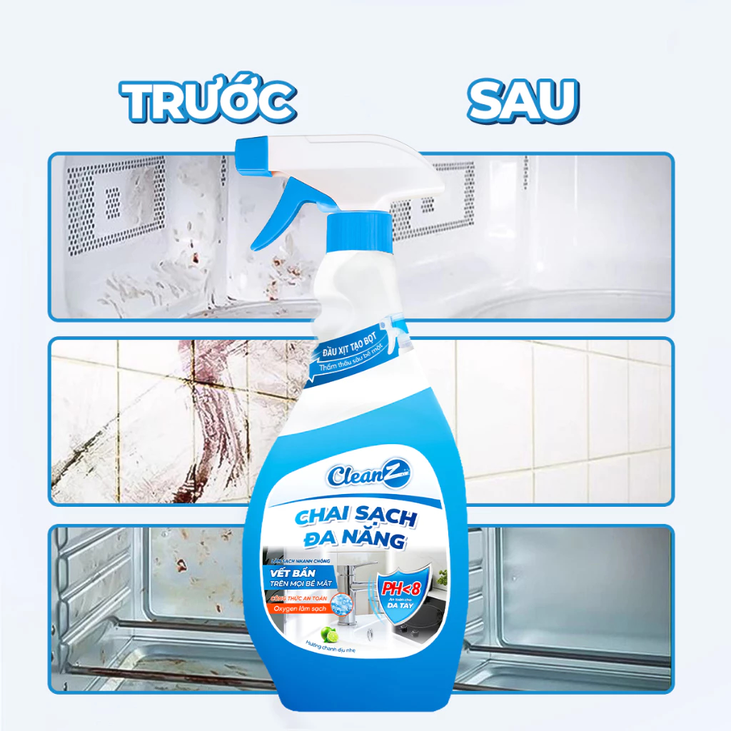 Chai sạch đa năng CleanZ hương chanh là giải pháp làm sạch và khử mùi đa năng cho mọi khu vực trong nhà từ bếp, phòng khách đến phòng tắm,... Các hoạt động sinh hoạt hằng ngày dễ tạo ra dầu mỡ, vết ố, mùi thực phẩm hay ẩm mốc, nhưng chỉ với một chai CleanZ hương chanh, bạn có thể xử lý nhanh các loại vết bẩn và mùi khó chịu, mang lại không gian thoáng sạch và tươi mát. Nhờ hiệu quả rõ rệt và sự tiện lợi khi dùng cho nhiều bề mặt, sản phẩm đang trở thành lựa chọn quen thuộc của nhiều gia đình Việt.