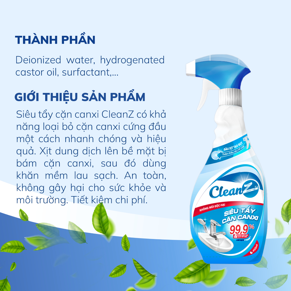 THÔNG TIN CHI TIẾT Chai Xịt Tẩy Cặn Canxi CleanZ Chống Ăn Mòn Inox: