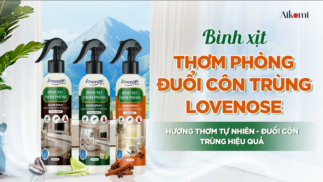 Trong số đó, Xịt thơm phòng đuổi côn trùng Lovenose nổi bật là giải pháp an toàn, không chỉ tạo lớp chắn ngăn côn trùng tiếp cận mà còn giúp giữ cho bầu không khí trong nhà luôn thoáng sạch, tươi mát và phù hợp với cả trẻ nhỏ lẫn người lớn tuổi – những người vốn nhạy cảm với mùi hương công nghiệp và hóa chất.