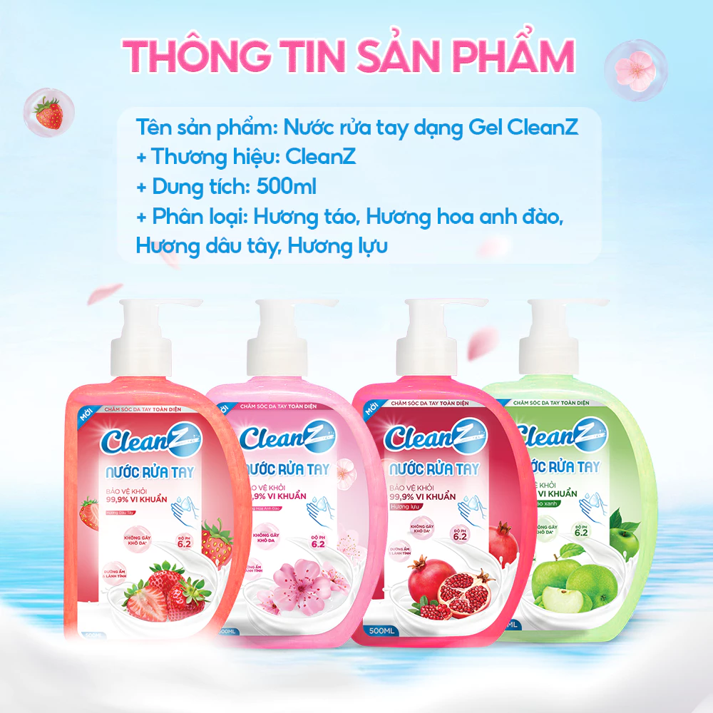 Nước Rửa Tay CleanZ Dạng Gel Tạo Bọt Làm Sạch, Ngừa Vi Khuẩn, Dưỡng Da Tay