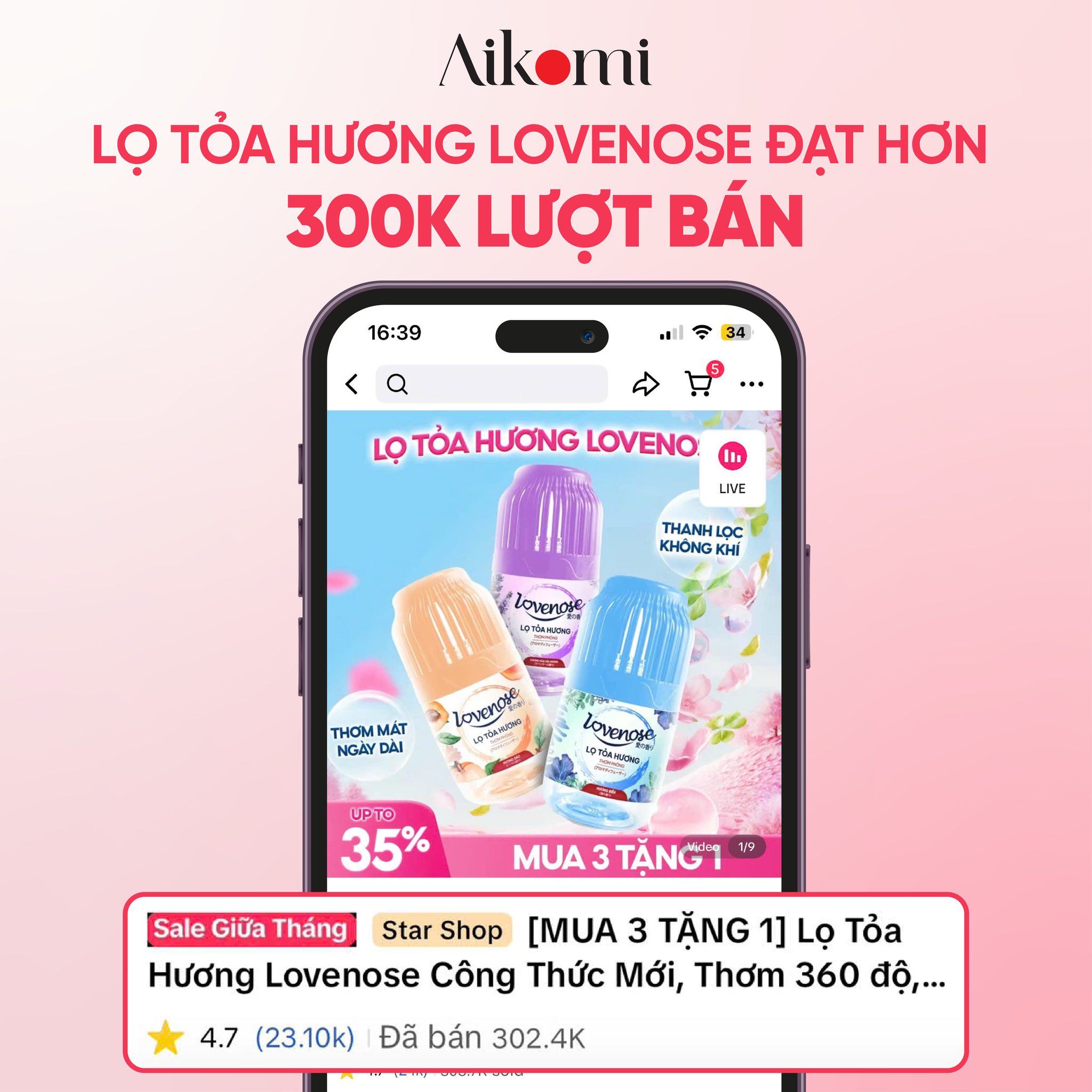 Lọ tỏa hương Lovenose – dòng sản phẩm khử mùi và lan tỏa hương thơm tự nhiên từ Aikomi – đã chính thức vượt mốc 300.000 lượt bán trên TikTok Shop. Con số không chỉ thể hiện hiệu quả của sản phẩm, mà còn là minh chứng rõ ràng cho sự tin tưởng mà người dùng dành cho thương hiệu trong suốt thời gian qua.
